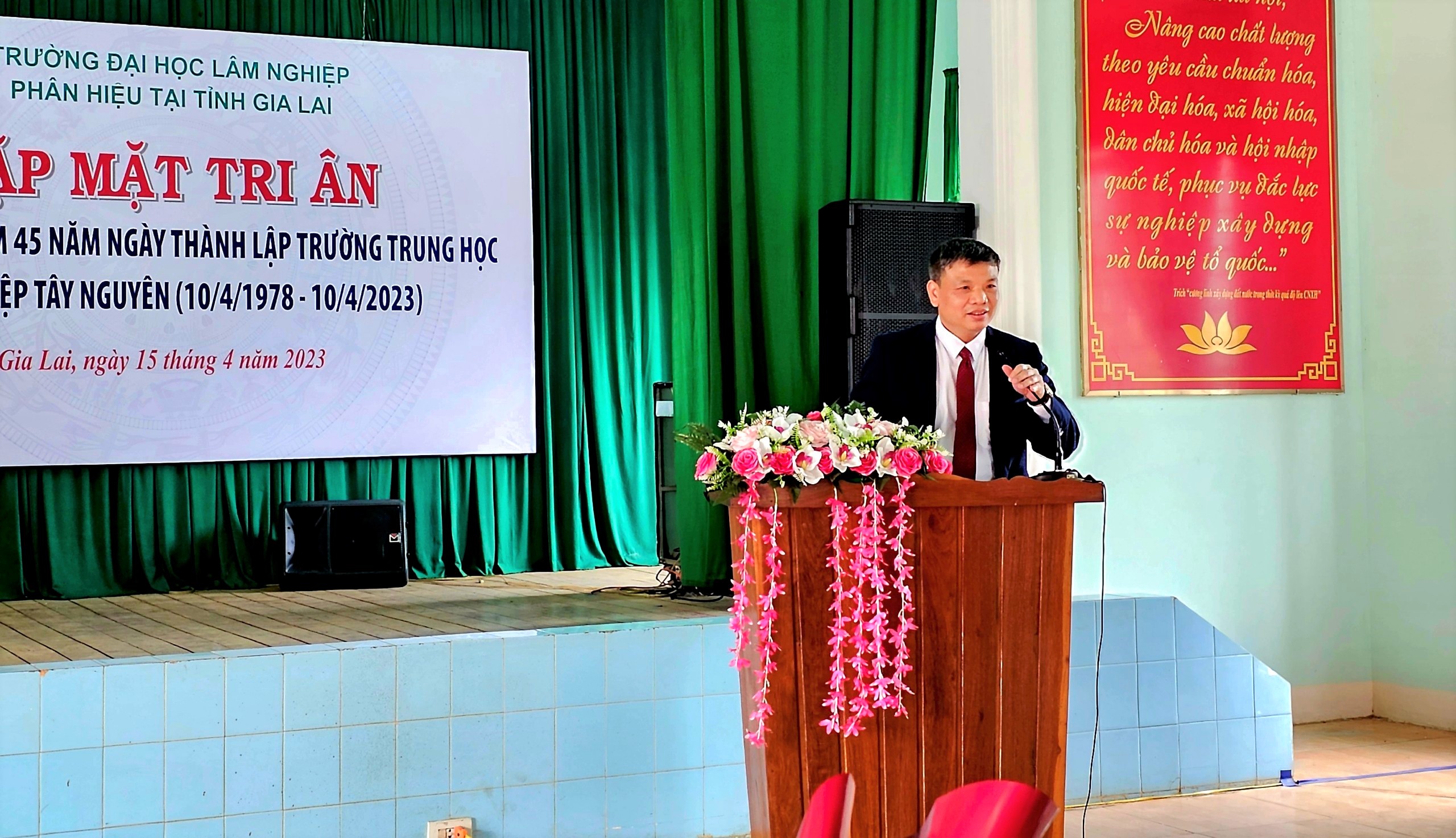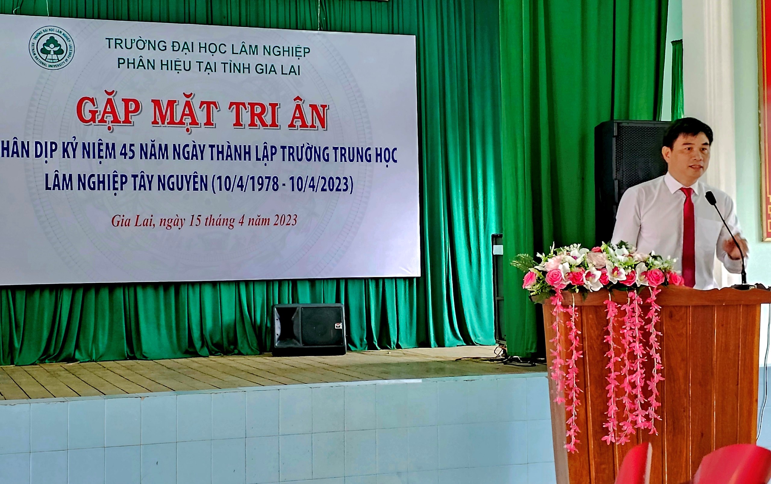 Sáng ngày 15/4/2023, Phân hiệu Trường Đại học Lâm nghiệp tại tỉnh Gia Lai đã long trọng tổ chức buổi gặp mặt, tri ân nhân dịp kỷ niệm 45 năm ngày thành lập Trường Trung cấp Lâm nghiệp (TCLN) Tây Nguyên (10/4/1978-10/4/2023) để cùng ôn lại chặng đường 42 năm (1978-2020) xây dựng và phát triển Trường Trung cấp Lâm nghiệp Tây Nguyên và 03 năm (2020-2023) hoạt động của Phân hiệu trường Đại học Lâm nghiệp tại tỉnh Gia Lai.