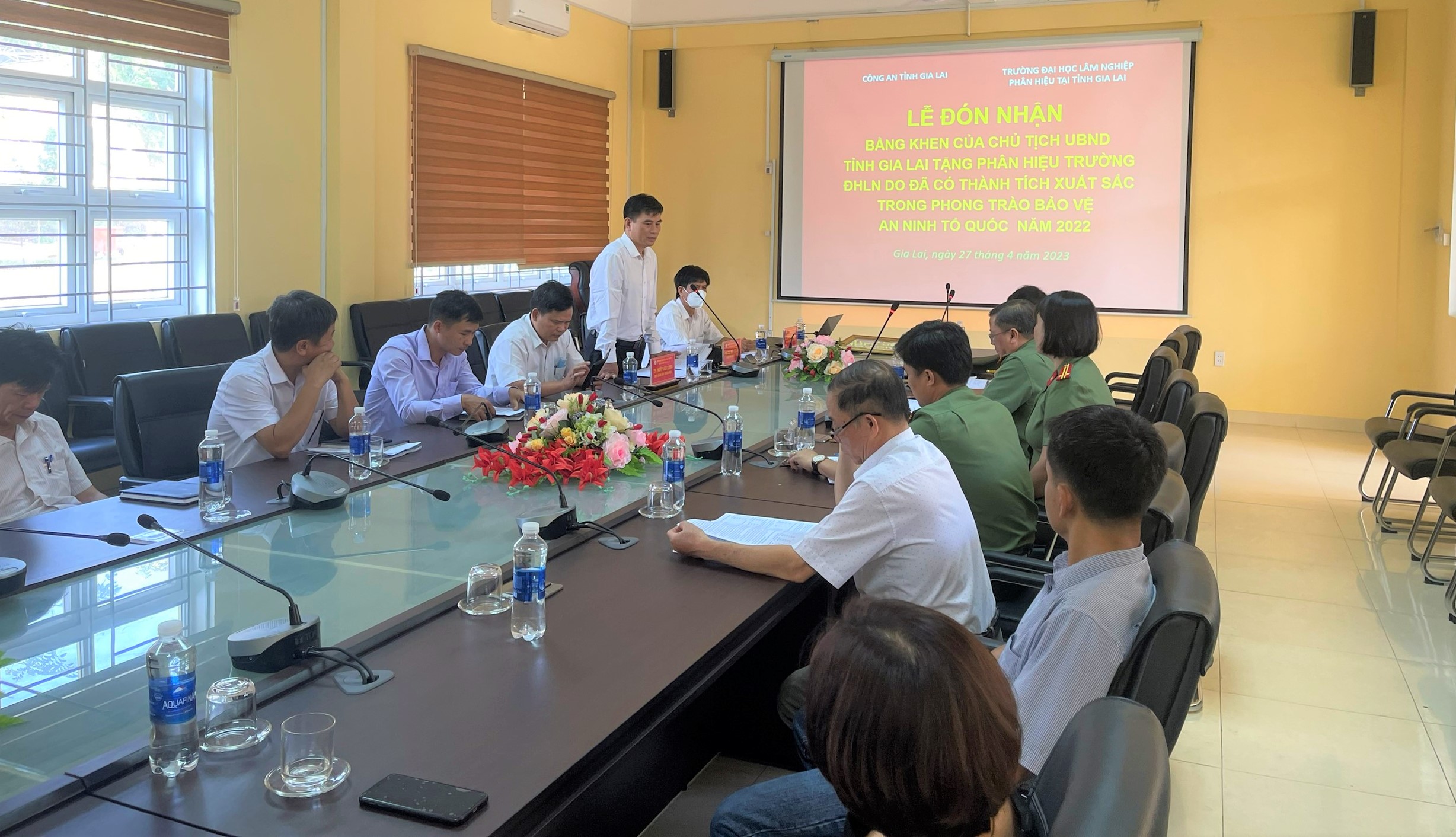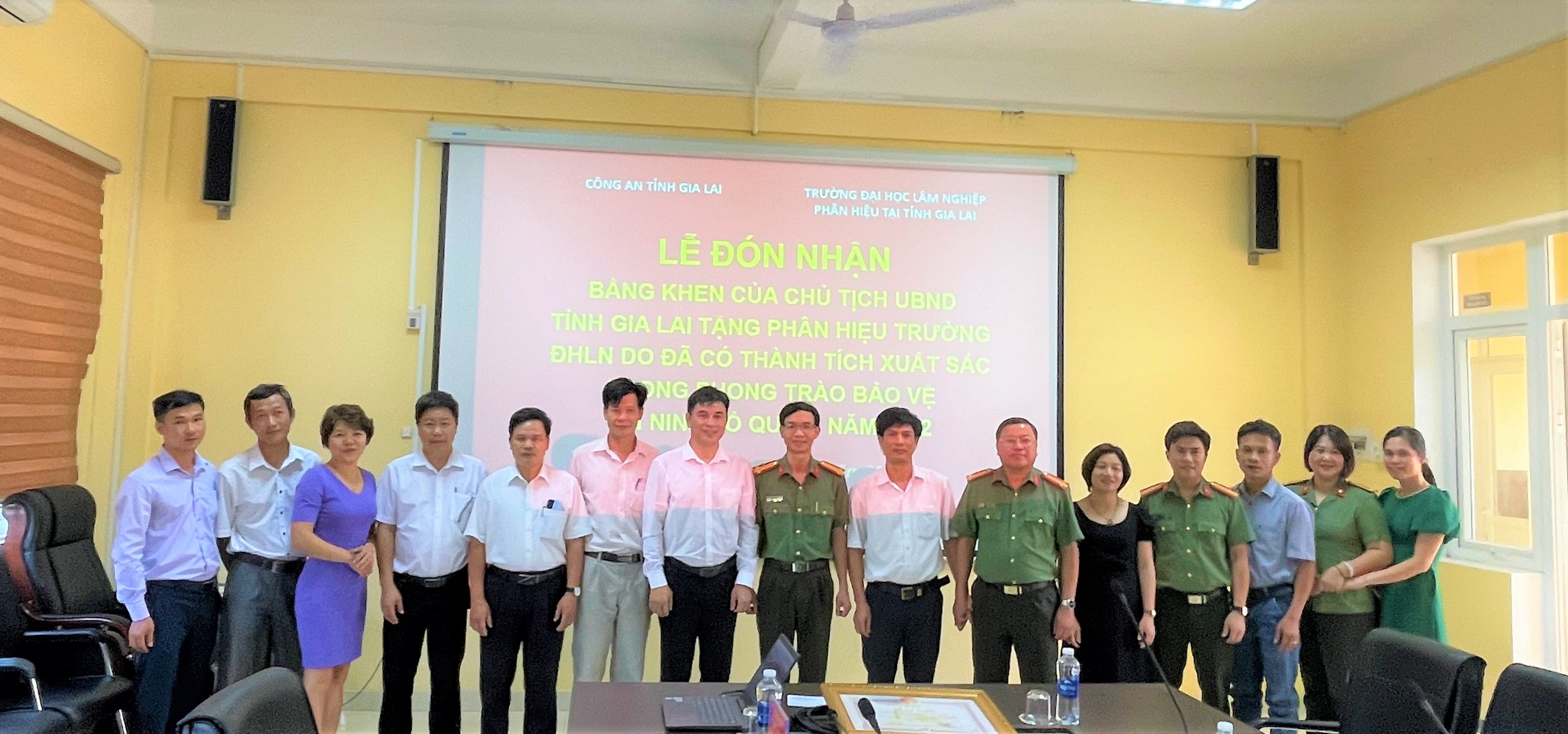 Sáng ngày 27/4/2023, tại Phân hiệu Trường Đại học Lâm nghiệp tại tỉnh Gia Lai đã long trọng tổ chức buổi Lễ trao tặng Bằng khen của Chủ tịch UBND tỉnh Gia Lai cho Phân hiệu Trường ĐHLN tại tỉnh Gia Lai do đã có thành tích xuất sắc trong phong trào “Toàn dân bảo vệ an ninh Tổ quốc” năm 2022.