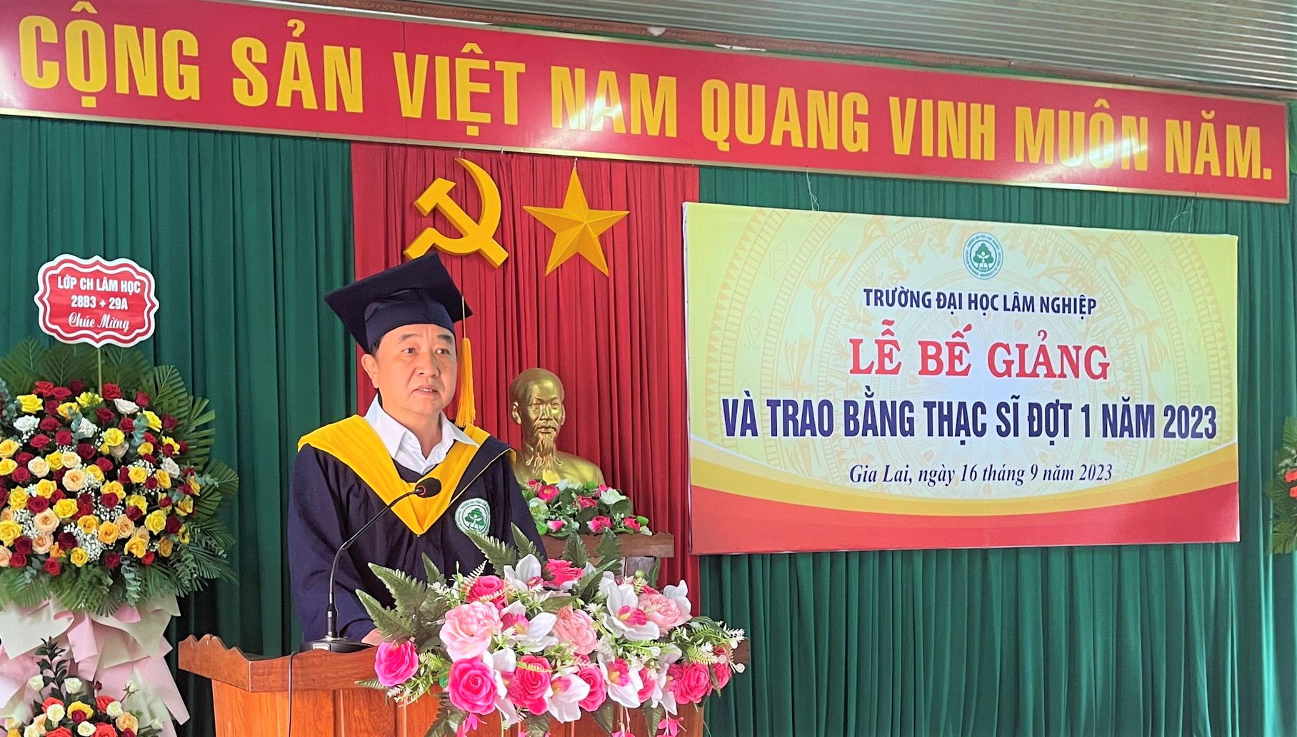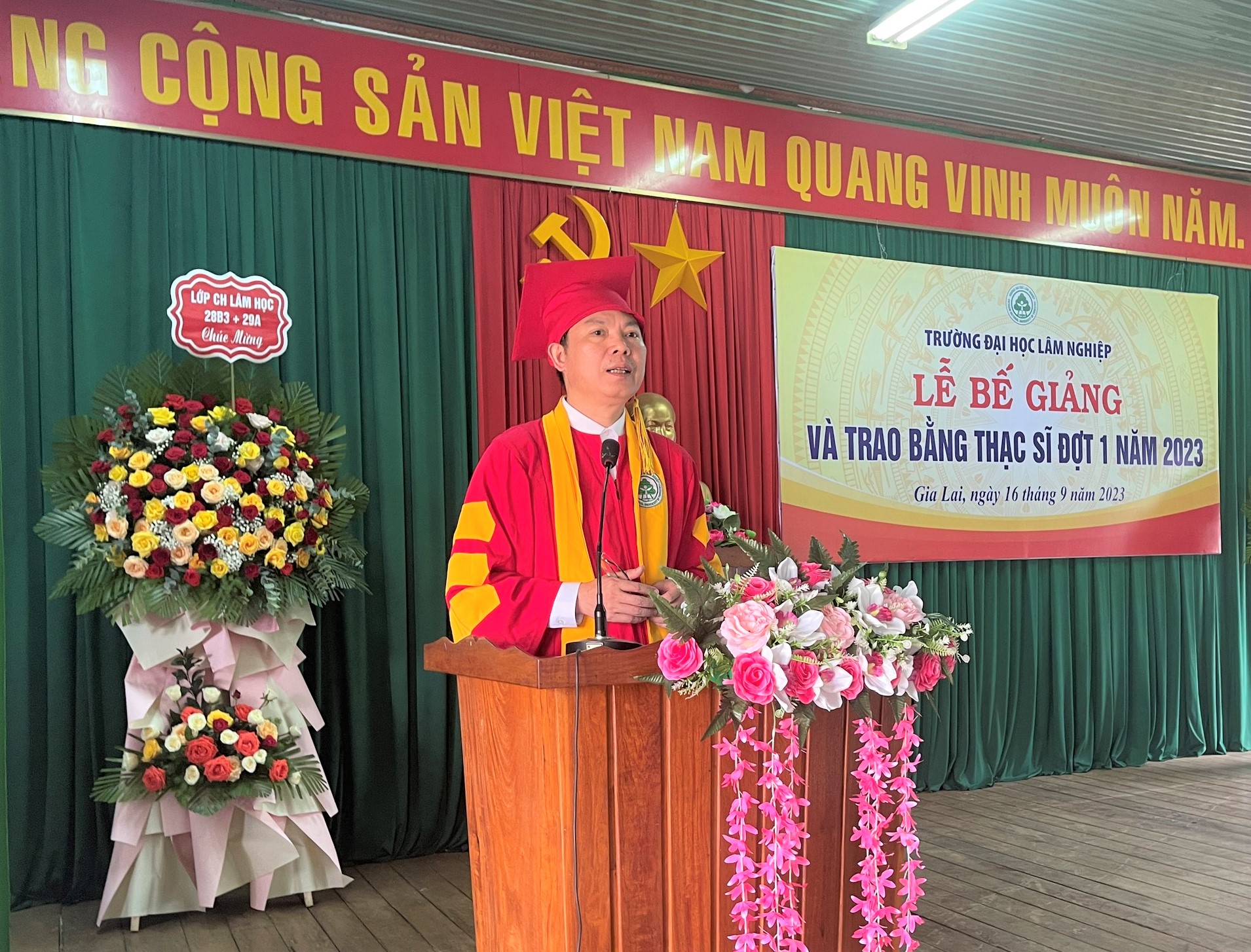 Sáng ngày 16/9/2023, Trường Đại học Lâm nghiệp đã long trọng tổ chức Lễ Bế giảng và trao bằng Thạc sĩ đợt 01 năm 2023 tại Phân hiệu Trường Đại học Lâm nghiệp tại tỉnh Gia Lai.