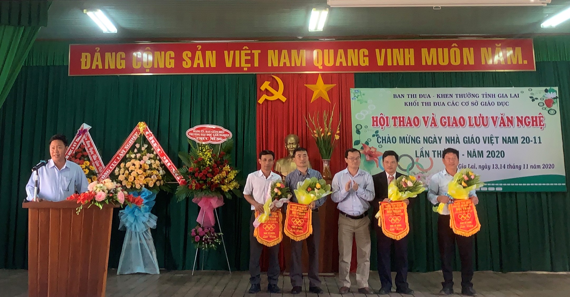 Chiều ngày 13/11/2020, tại Phân hiệu Trường Đại học Lâm nghiệp tại tỉnh Gia Lai, Khối Thi đua các cơ sở giáo dục tỉnh Gia Lai đã tổ chức Khai mạc Hội thao truyền thống và Giao lưu văn nghệ chào mừng kỷ niệm 38 năm Ngày Nhà giáo Việt Nam (20/11/1982 - 20/11/2020). Cùng đến tham dự Khai mạc có các thầy là Lãnh đạo, các vận động viên, cổ động viên của các trường.